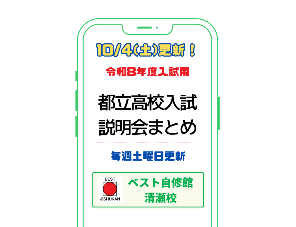 毎週土曜日更新!ベスト自修館清瀬校が作成する、2025年度都立高校説明会(令和8年度受験生用説明会)のまとめページです。