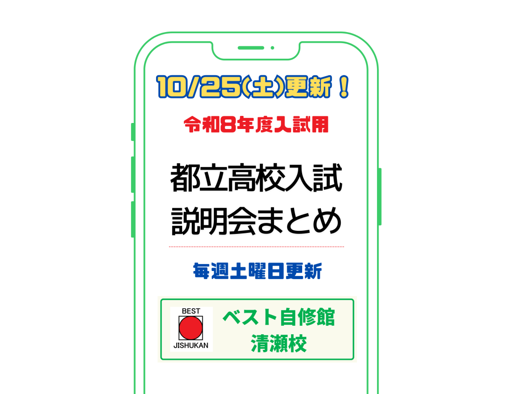 毎週土曜日更新!ベスト自修館清瀬校が作成する、2025年度都立高校説明会(令和8年度受験生用説明会)のまとめページです。