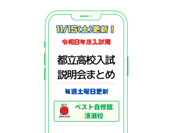 はじめに毎週土曜日更新!ベスト自修館清瀬校が作成する、2025年度都立高校説明会(令和8年度受験生用説明会)のまとめページです。塾生及び、清瀬市、東久留米市ほか西武池袋線沿線からの受験生が多い進学指導重点校・進学指導特別推進校、第3学区、第4学区、第9学区の学校対象まとめています。