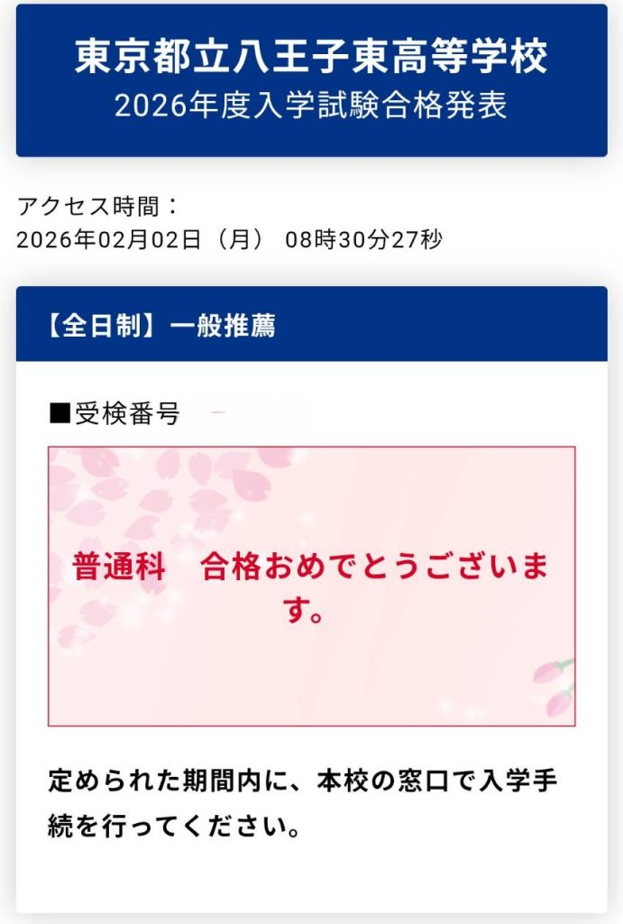 塾長の佐々木です!本日、2月2日は都立高校推薦入試の合格発表でした。