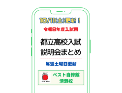 はじめに毎週土曜日更新!ベスト自修館清瀬校が作成する、2025年度都立高校説明会(令和8年度受験生用説明会)のまとめページです。塾生及び、清瀬市、東久留米市ほか西武池袋線沿線からの受験生が多い進学指導重点校・進学指導特別推進校、第3学区、第4学区、第9学区の学校対象まとめています。